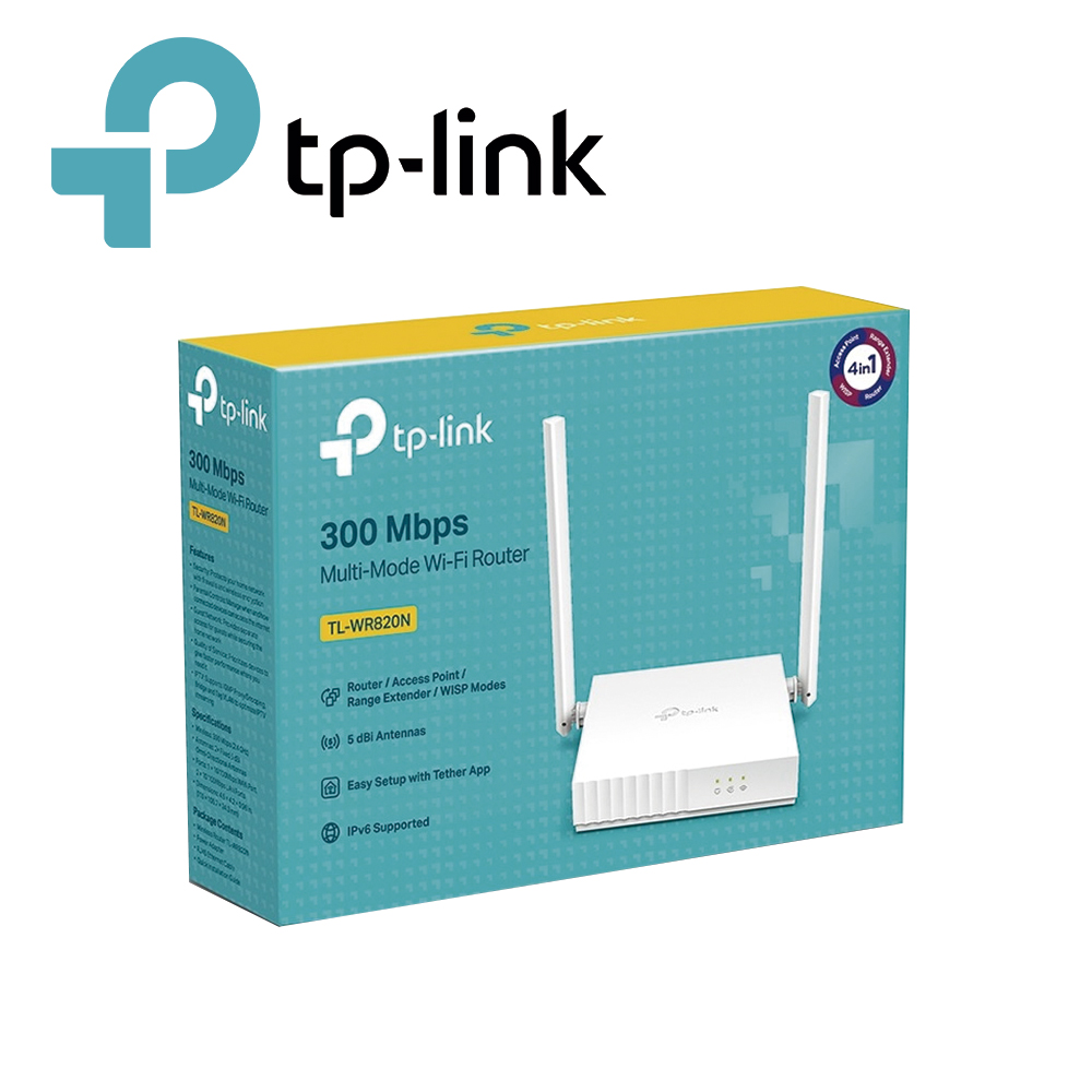 ROUTER INALAMBRICO TP-LINK TL-WR820N VELOCIDAD DE TRANSMISIÓN INALÁMBRICA 300 MBPS ADMITE 4 MODOS DE OPERACIÓN: ENRUTADOR, EXTENSOR DE RANGO, PUNTO DE ACCESO, MODO WISP. CONTROL PARENTAL PARA ADMINISTRACIÓN DE DISPOSITIVOS CONECTADOS 1 PUERTO WAN 10/100 MBPS 2 PUERTOS LAN 10/100 MBPS FRECUENCIA WI-FI 2.4 GHZ ADMINISTRACIÓN APP TETHER, WEB. USO INTERIOR