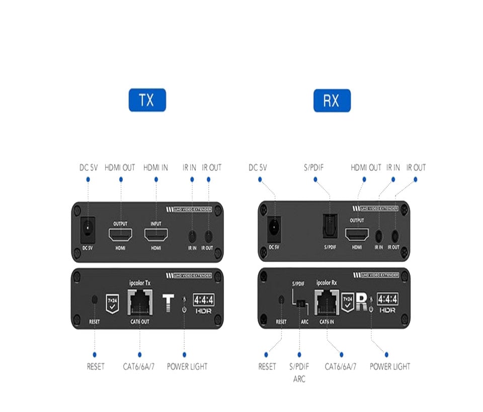 salida de audio digital S / PDIF en la unidad RX (compatible con Dolby) y salida de bucle HDMI en la unidad TX