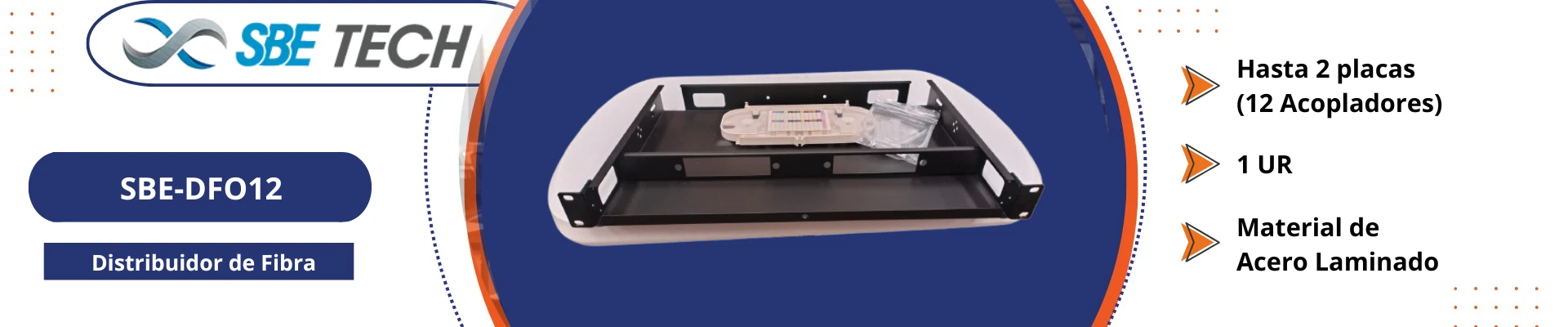 El SBE-DFO12 es un distribuidor de fibra óptica de montaje en rack de 19”, diseñado para ofrecer una solución eficiente en la distribución, terminación e interconexión de fibras ópticas dentro de cuartos de telecomunicaciones o centros de datos.