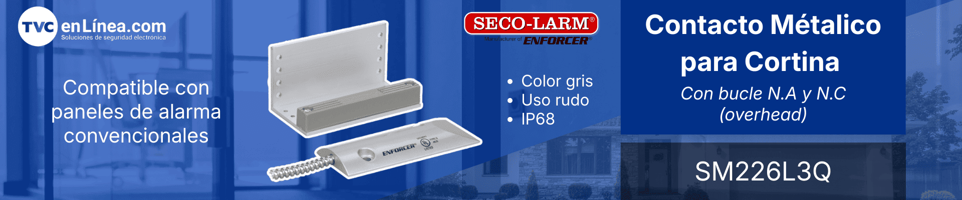 El contacto magnético SM226L3Q se utiliza para puertas o cortinas en situaciones industriales y residenciales donde hay una gran brecha, ajustable para ajustarse a la mayoría de los anchos de canal de puerta, incorpora un interruptor contenido en carcasa curvada de aluminio fundido bajo perfil para montaje en superficie en el piso del garaje.