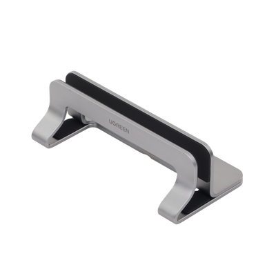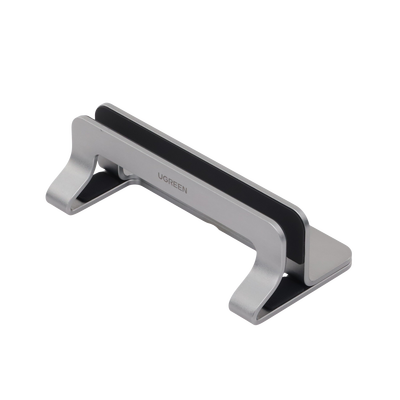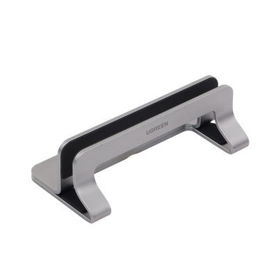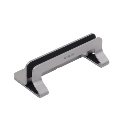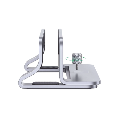 Soporte Vertical para Laptop / Adecuado para escritorio / Anchura Ajustable (12-26mm) / Amplia compatibilidad / Anti-Arañazos / Anti-Deslizante /Ajustable Mediante Tornillos / Color Plata / Aluminio + Silicona