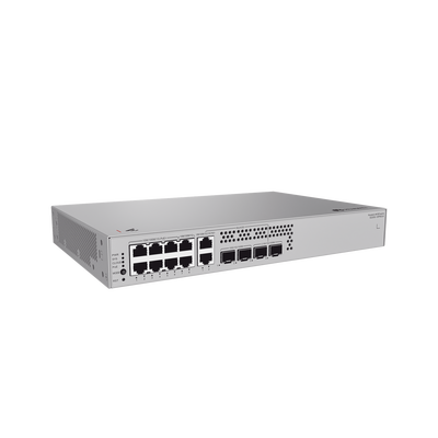 - Puertos: 8 x 10/100/1000BASE-T (6 PoE), 2 x 10/100/1000/2.5GBASE-T (PoE+) combo con 2 x 2.5GE SFP y 2x10GE SFP+
