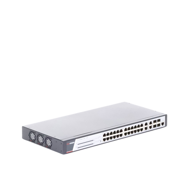 Switch Gigabit PoE+ / Administrable / 24 Puertos 1000 Mbps PoE+ / 4 Puertos 1000 Mbps + 4 Puertos SFP de Uplink / 370 Watts / Soporta IGMP