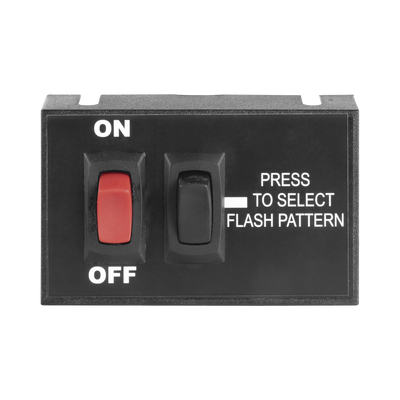El switch encendido/apagado está iluminado y esta diseñado solo para sistemas de 12Vcc. El interruptor de selección de patrón es momentáneo (Push Boton), el suministra +12 Vcc al cable disparador del patrón de flasheo cuando se presiona.