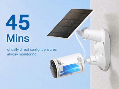 45 minutos diarios de luz solar directa cargan la cámara para usarla durante todo el día, gracias a sus células de silicio monocristalino y a su potencia máxima de carga de 2.5w