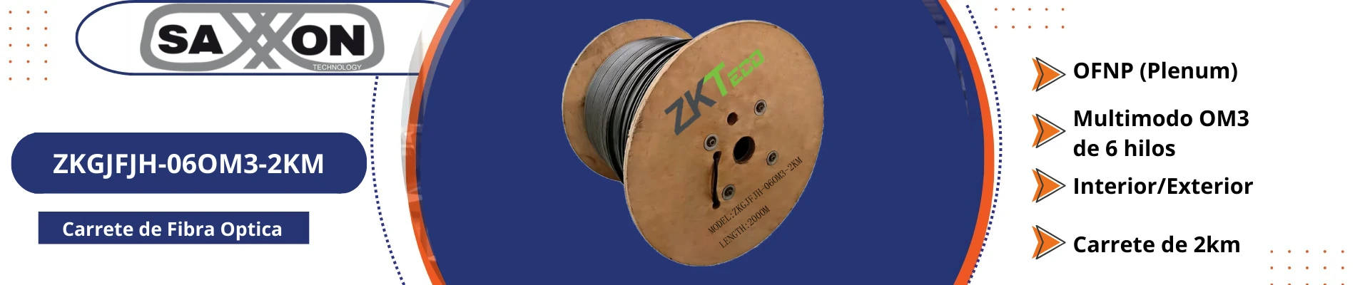 La fibra óptica multimodo OM3 modelo ZKGJFJH-06OM3-2KM de TCE está diseñada para aplicaciones interior y exterior, ideal para redes de datos, cuartos de telecomunicaciones y enlaces de corta distancia. Cuenta con 6 hilos, construcción Loose Tube de 250 µm, diseño dieléctrico y cubierta LSZH con certificación OFNP (Plenum), lo que la hace adecuada para instalaciones en espacios con manejo de aire. Se suministra en carrete.
