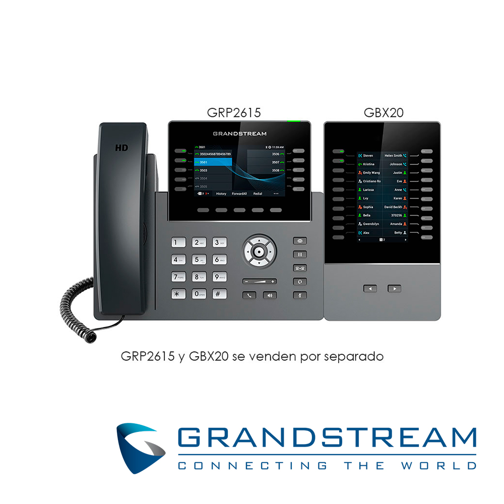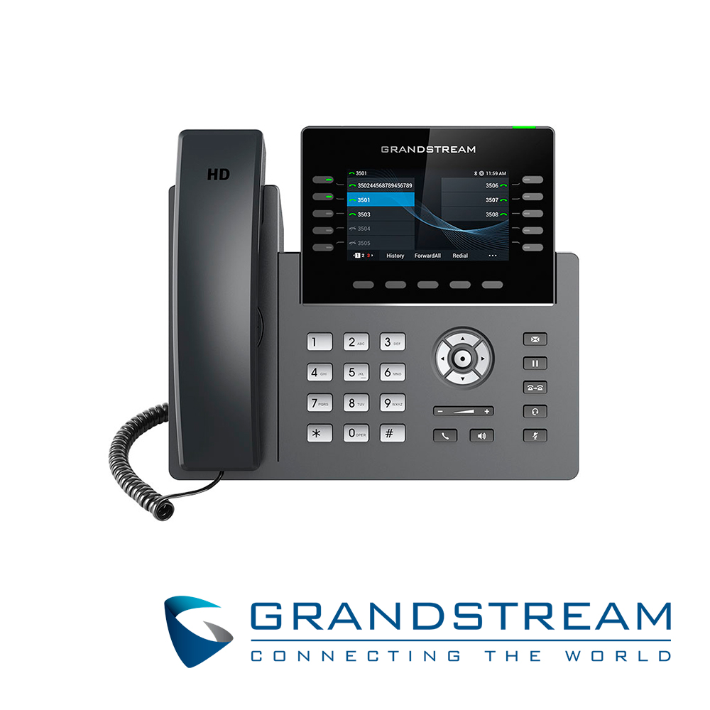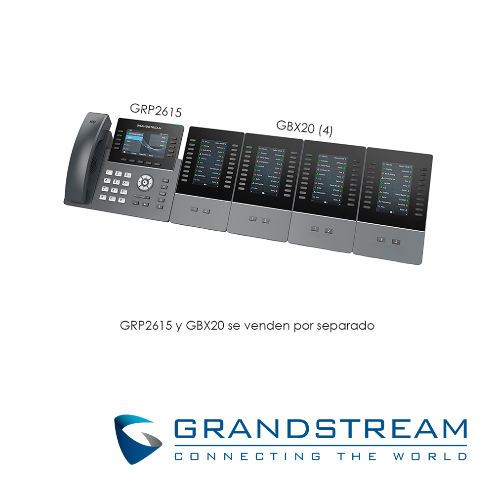 TELEFONO IP GRADO CARRIER WIFI 6 GRANDSTREAM GRP2615 / 16 CUENTAS SIP / 10 LINEAS / PANTALLA COLOR LCD TFT / 2 PUERTOS 10/100/1,000MBPS / HASTA 40 TECLAS BLF / WIFI 802.11AC/AX / ALIMENTACION POE AF / 12VCD/1A