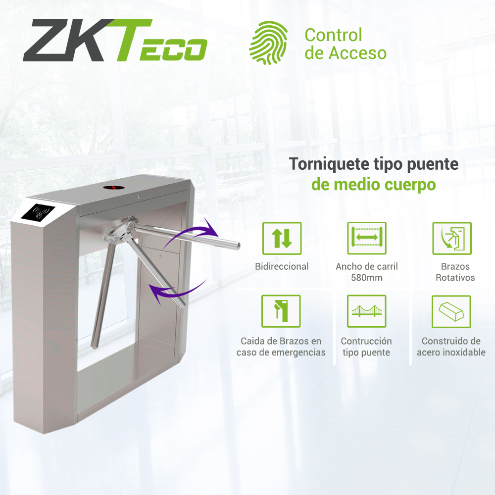 TORNIQUETE TIPO PUENTE DE MEDIO CUERPO ZKTECO TS200 BIDIRECCIONAL BAJO CONSUMO ACERO INOXIDABLE SISTEMA HASTA 30 ACCESOS POR MINUTO. LIBERACIÓN SEMIAUTOMATICA EN LA PÉRDIDA DE ENERGÍA SIN PANEL SIN LECTORA
