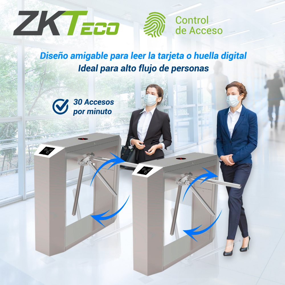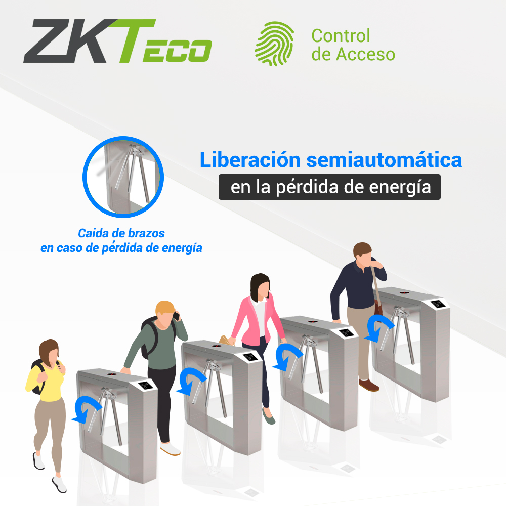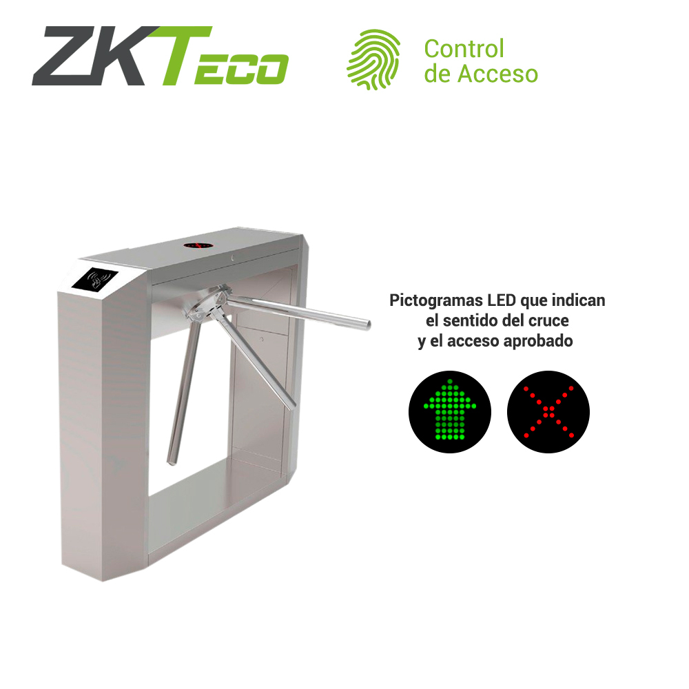 Torniquete TS200 El nuevo y mejorado torniquete TS200 tiene un gabinete diferente con mas rendimiento. TS200 es un torniqute trípode construido en acero inoxidable con función bidireccional cuenta con la función de caida de brazo en caso de falla electrica lo que permite el libre paso de las personas en caso de una emergencia. Sus pictogramas LED hacen que el usuario tenga una experiencia mas intuitiva ya que indican el sentido del cruce. El toniquete TS200 es un torniquete de facil instalación. Gracias a sus compenentes electricos de alta calidad hacen un equipo de bajo mantenimiento. Características: Carcasa y brazos fabricados en acero inoxidable SUS304. Los electroimanes de bloqueo solo operan cuando son activados y se encuentran en modo de espera cuando el dispositivo está inactivo lo que se traduce a un ahorro de energia significativo. El mecanismo compacto patentado ZKTeco asegura larga vida del aceite lubricante en el interior. Componentes electrónicos de alta calidad. Caída de brazos en caso de emergencia. Sin tornillos expuestos, siendo más seguro para los usuarios. Operación altamente confiable diseñado para aplicaciones de alto flujo de personas. Cuenta con señalización para indicar la dirección del movimiento. Diseño amigable para leer la tarjeta o huella digital.
