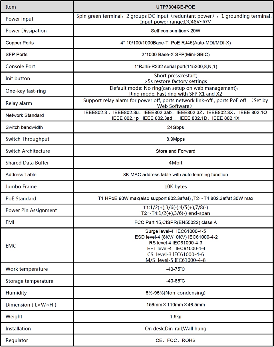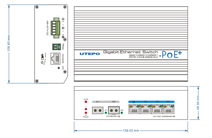 Los switches Utepo se cuentan con un diseño sin ventilador, cubierta de metal y plástico térmico para una mejor disipación de calor, cuenta con un soporte nivel 4 de protección industrial y soporta hasta 6Kv en protección contra descargas por lo cual permite adaptarse a diferentes ambientes complejos.