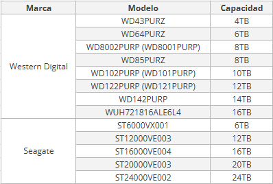 Lista de unidades de disco duro compatibles